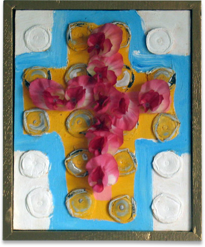 | Sweet Pea Cross, Assemblage, 20x26x6cm |
